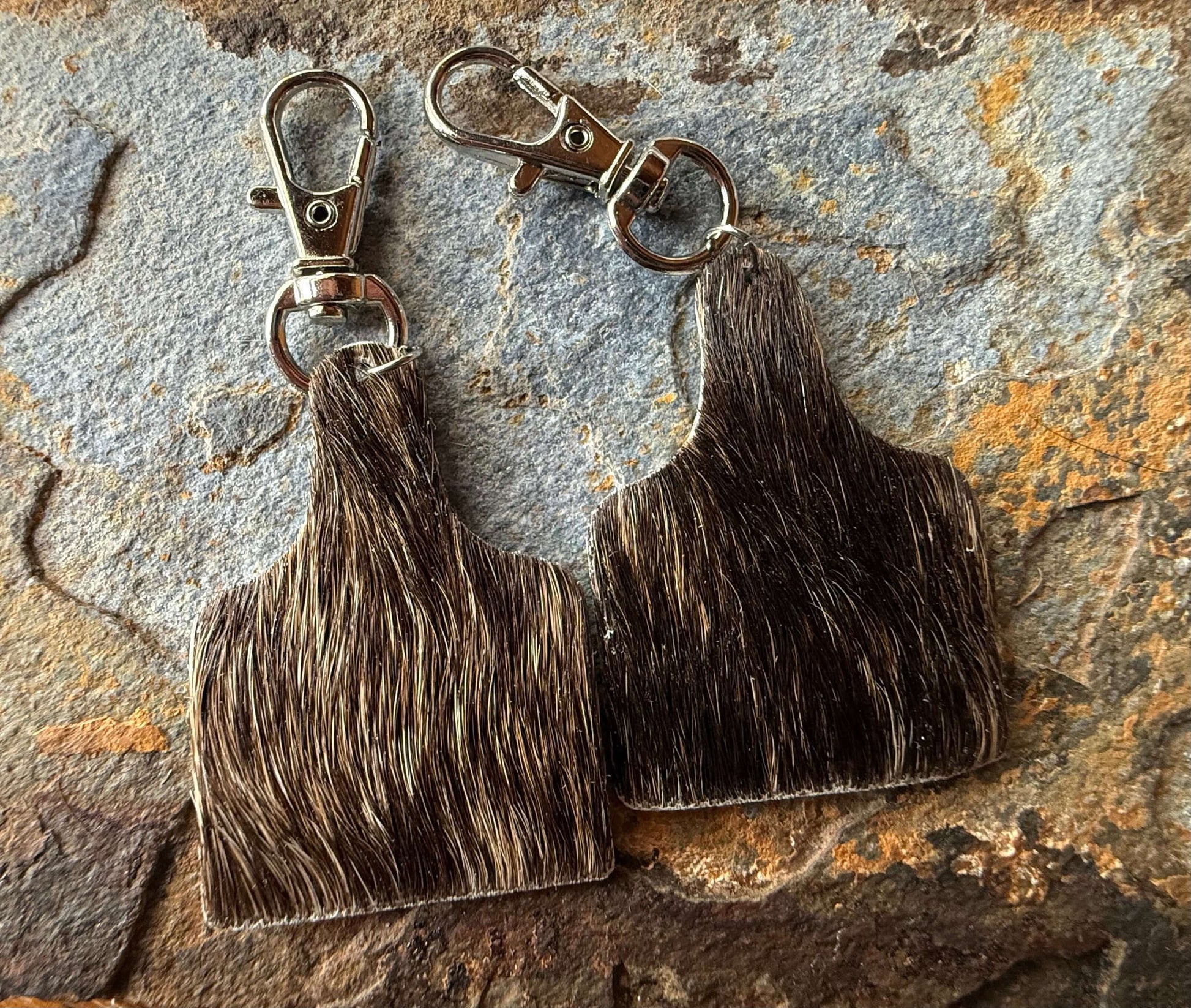 Add a little cowgirl flair to your everyday carry with this hair-on cowhide cow tag keychain! Cut in the shape of a classic cattle tag, this unique piece is crafted from genuine cowhide, making each one one-of-a-kind. Want a little extra western charm? Choose the turquoise bead option for that perfect pop of color! Clip it to your keys, purse, or tote for a rustic-chic touch that screams wild, western, and totally you! 🤠✨