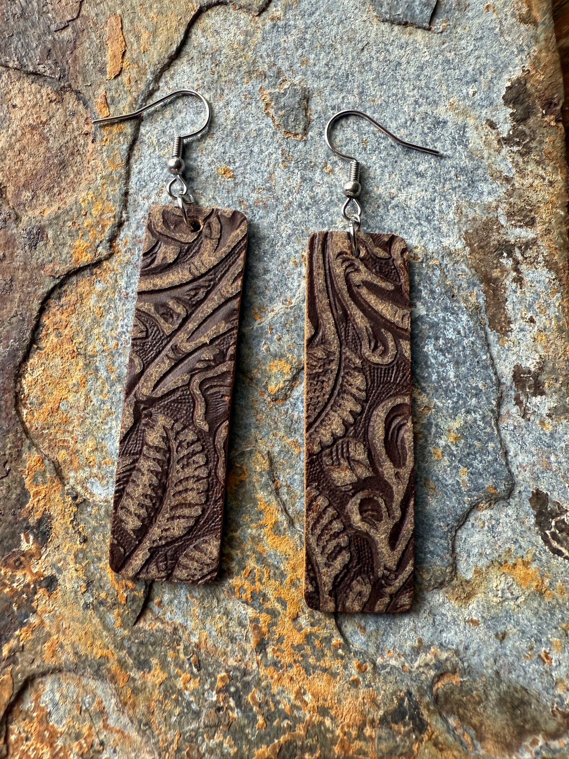 Leather Medium Bar Earrings – Bold Western Elegance with Rustic Charm