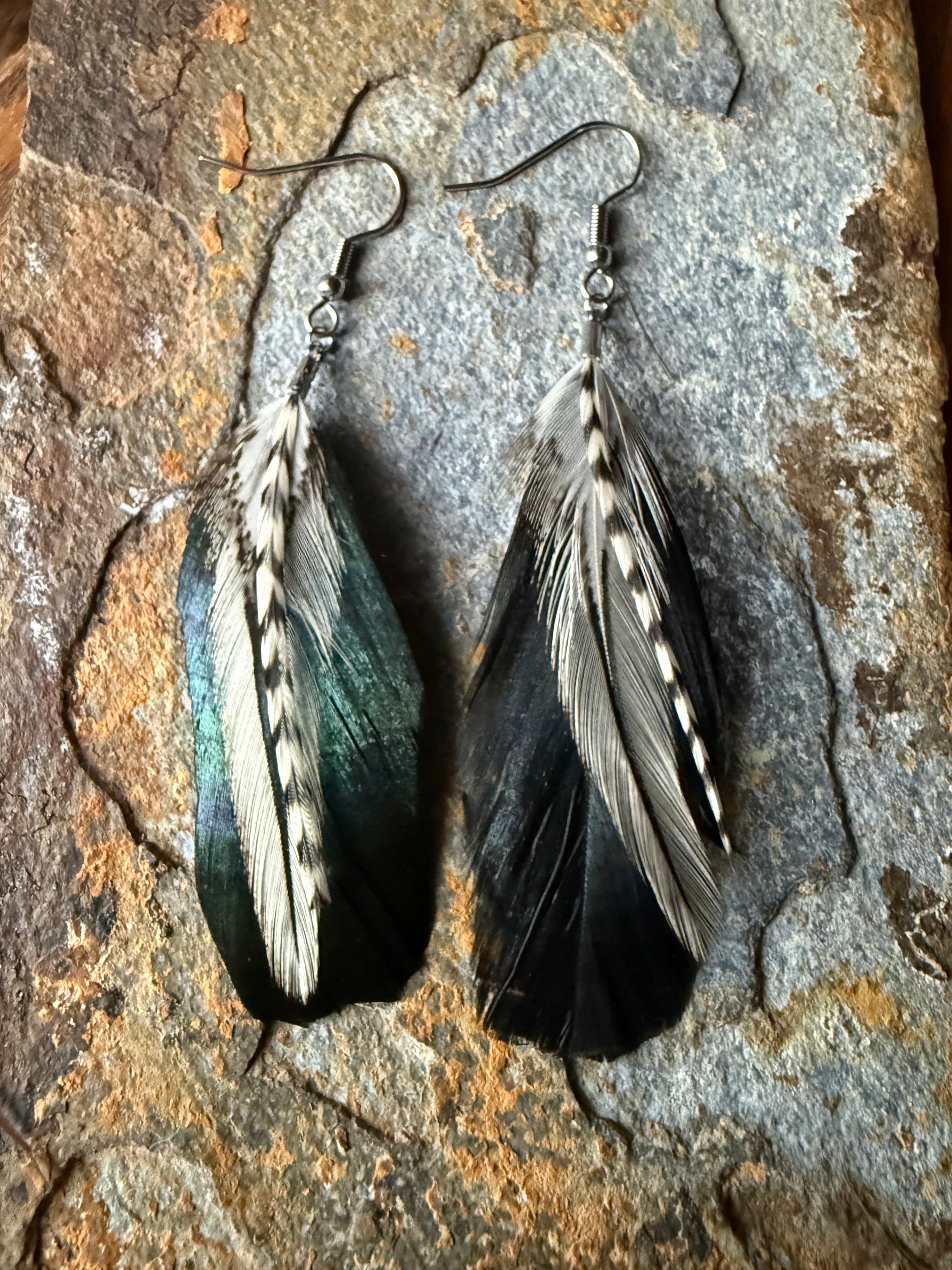Perfect for everyday wear or special occasions, these earrings bring effortless cowgirl charm with a refined, boho touch. Each pair is one of a kind, showcasing the natural variation that makes feather jewelry so special.